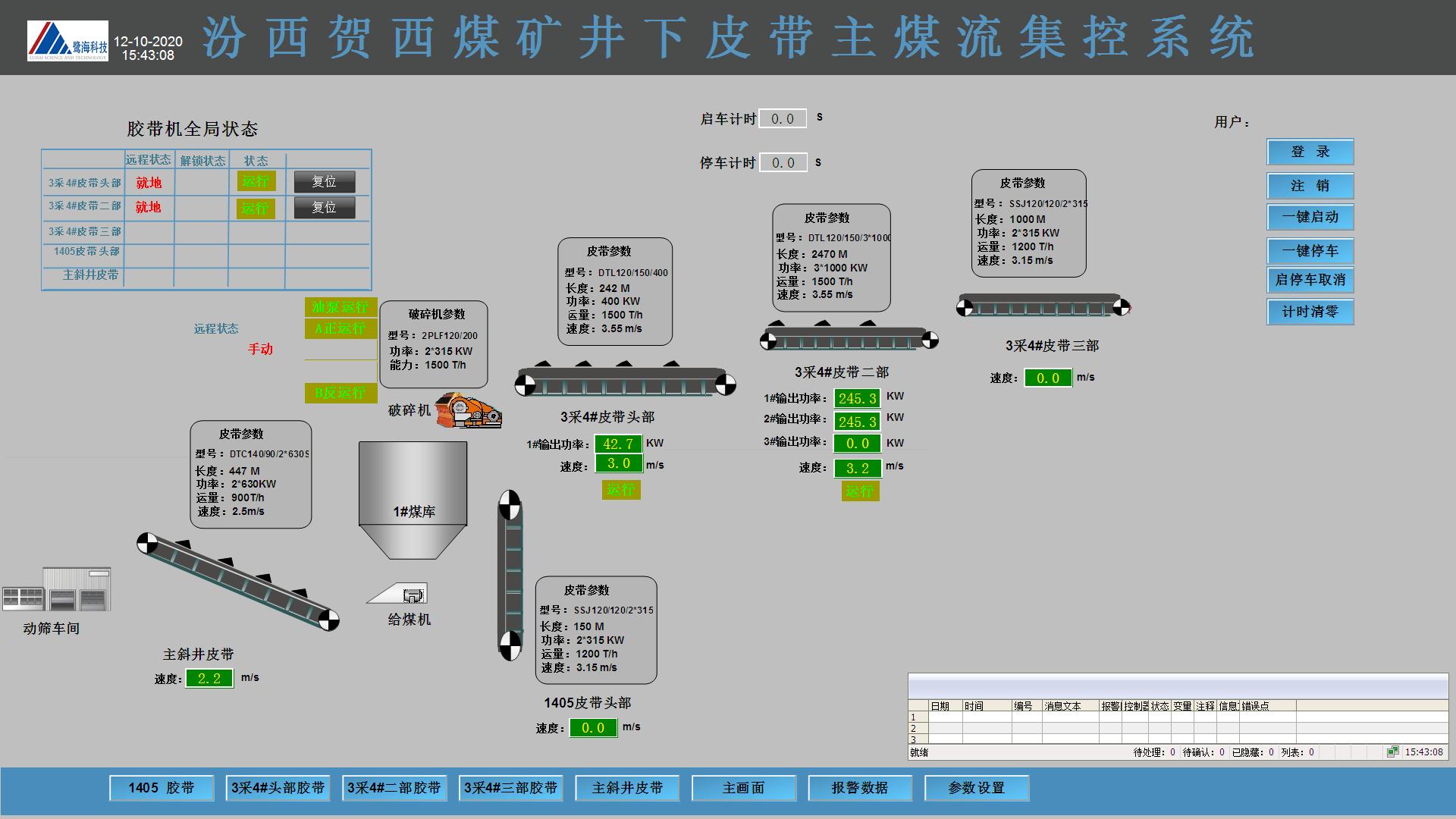地面集控數(shù)據(jù)中心實(shí)現(xiàn)煤流運(yùn)輸系統(tǒng)集中遠(yuǎn)程自動控制,實(shí)現(xiàn)單控、聯(lián)控、順序啟停、一鍵啟停。達(dá)到無人值守,有人巡檢。